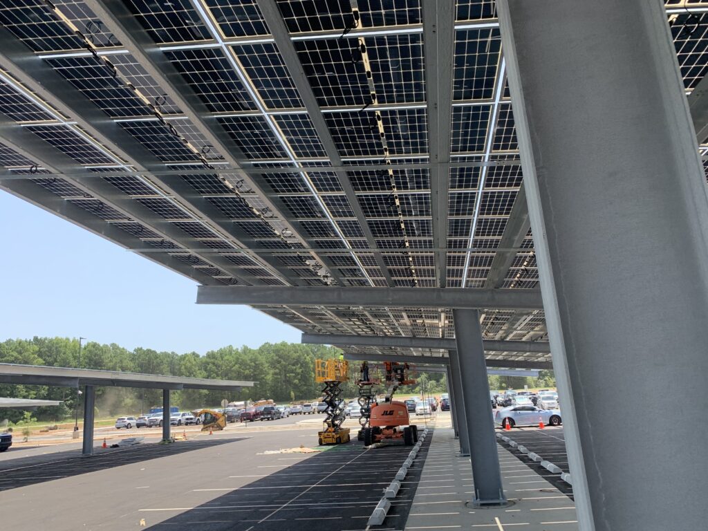 In addition to solar generation, the canopy structure enhances the passenger experience by providing shaded parking and improved site aesthetics.